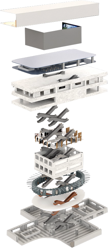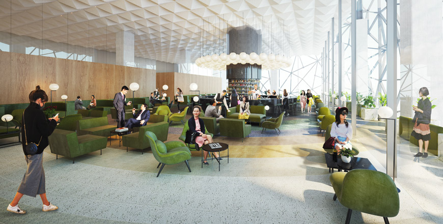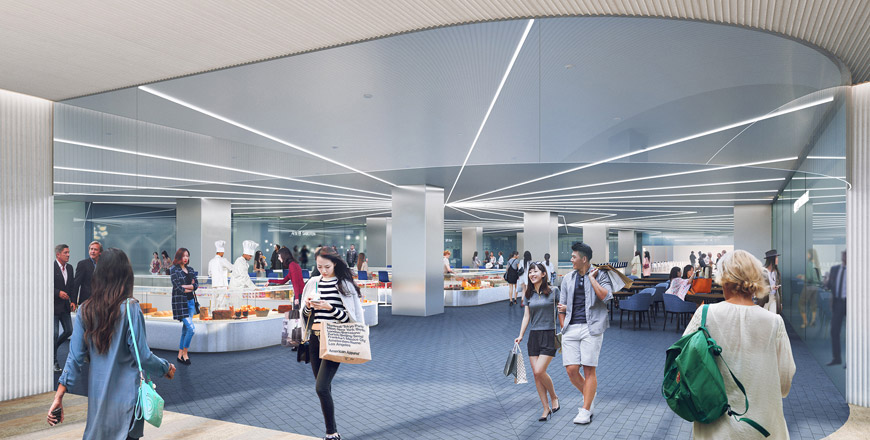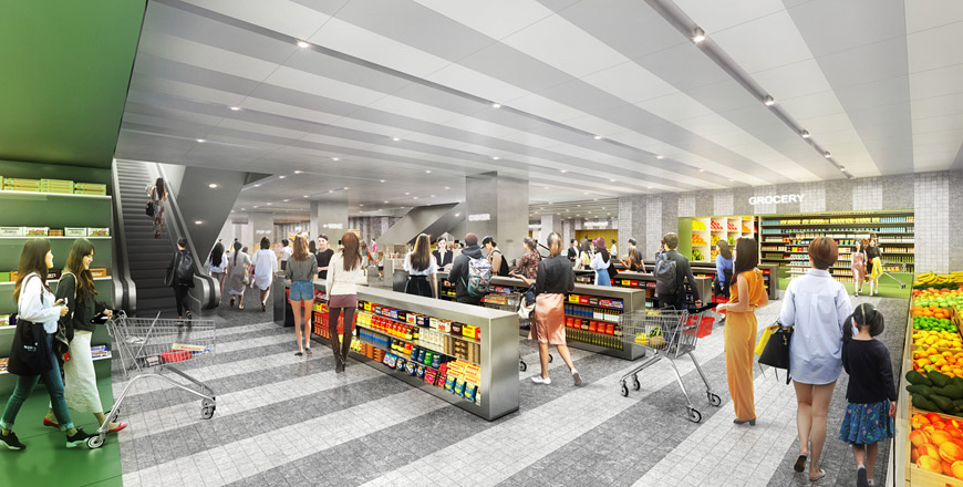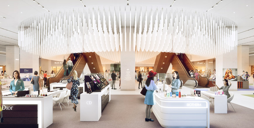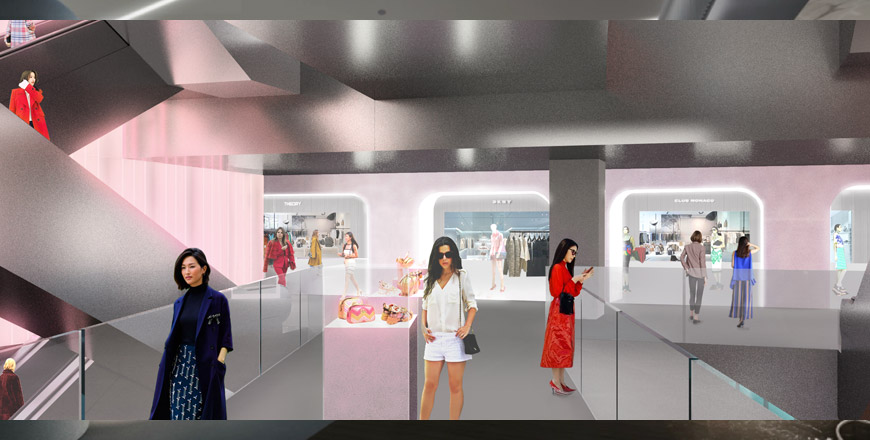각층을 연결하는 에스컬레이터 동선 공간을 의미하는 보이드 타워는 층별 MD의 속성에서 영감을 얻어 각기 다른 콘셉트의 디자인을 선보입니다.