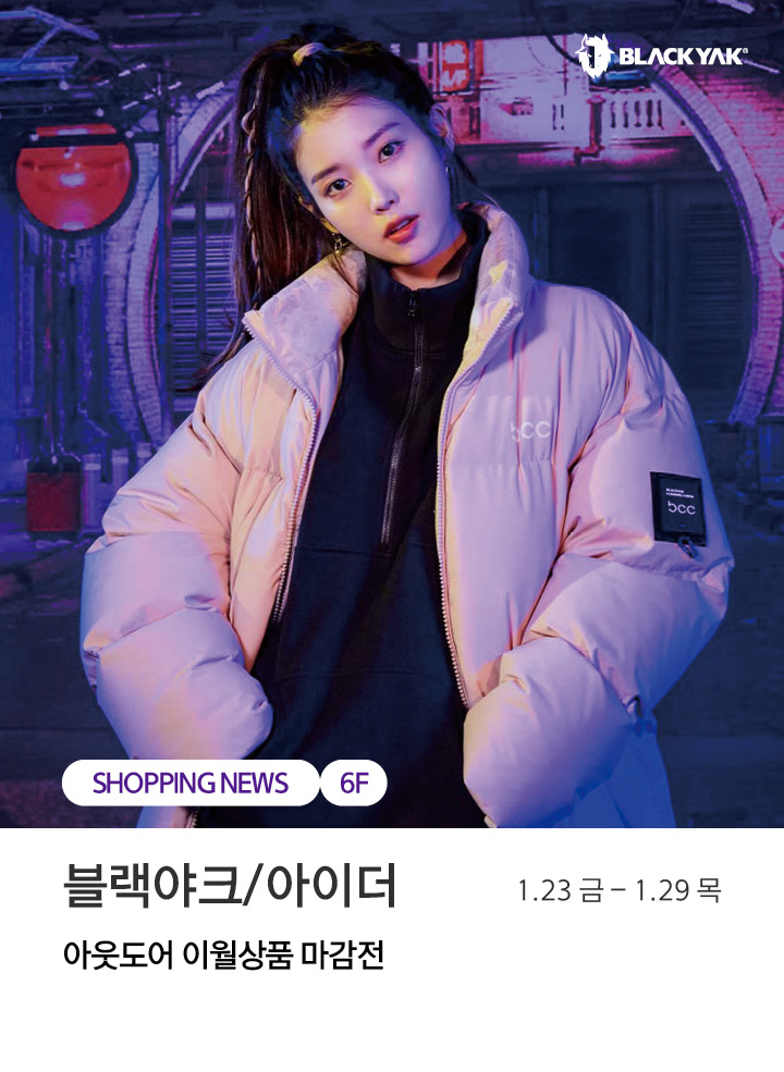 상품행사 블랙야크/아이더 아웃도어 이월상품 마감전 1.23 금 - 1.29 목 페이스북에 공유하기 카카오스토리로 공유하기 PREV 목록 NEXT 설 선물세트 예약 판매는 아래 번호로 문의 부탁드립니다. 센터시티 041.411.5309, 5311 확인