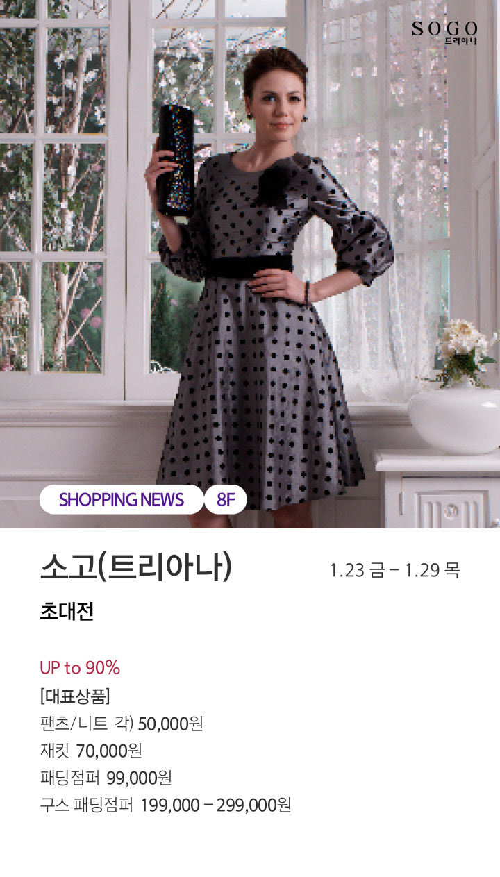 상품행사 소고(트리아나) 초대전 1.23 금 - 1.29 목 페이스북에 공유하기 카카오스토리로 공유하기 PREV 목록 NEXT 설 선물세트 예약 판매는 아래 번호로 문의 부탁드립니다. 센터시티 041.411.5309, 5311 확인