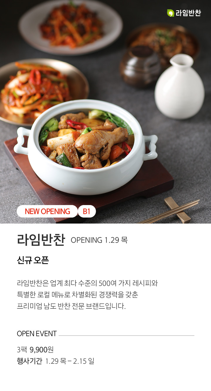 뉴오프닝&팝업 라임반찬 신규오픈 1.29 목 페이스북에 공유하기 카카오스토리로 공유하기 PREV 목록 NEXT 설 선물세트 예약 판매는 아래 번호로 문의 부탁드립니다. 센터시티 041.411.5309, 5311 확인