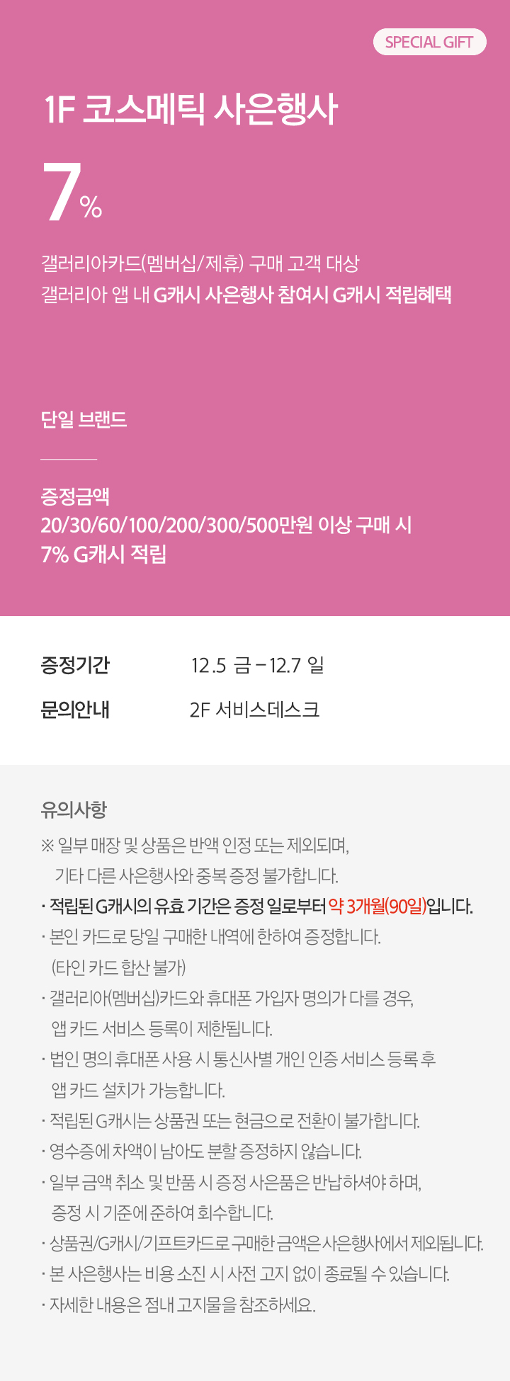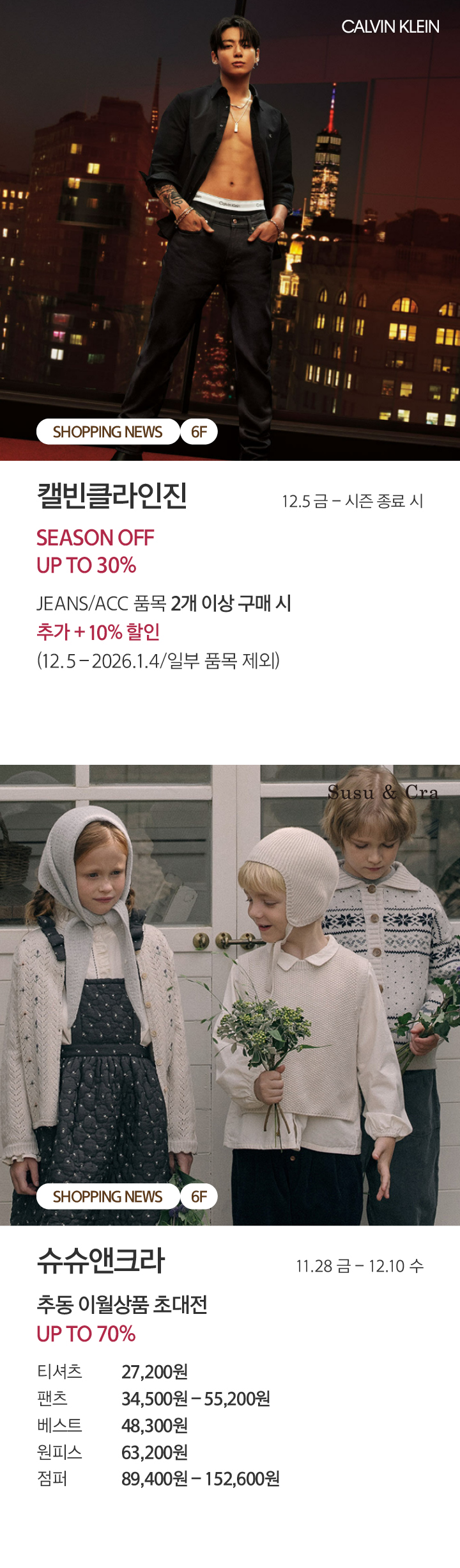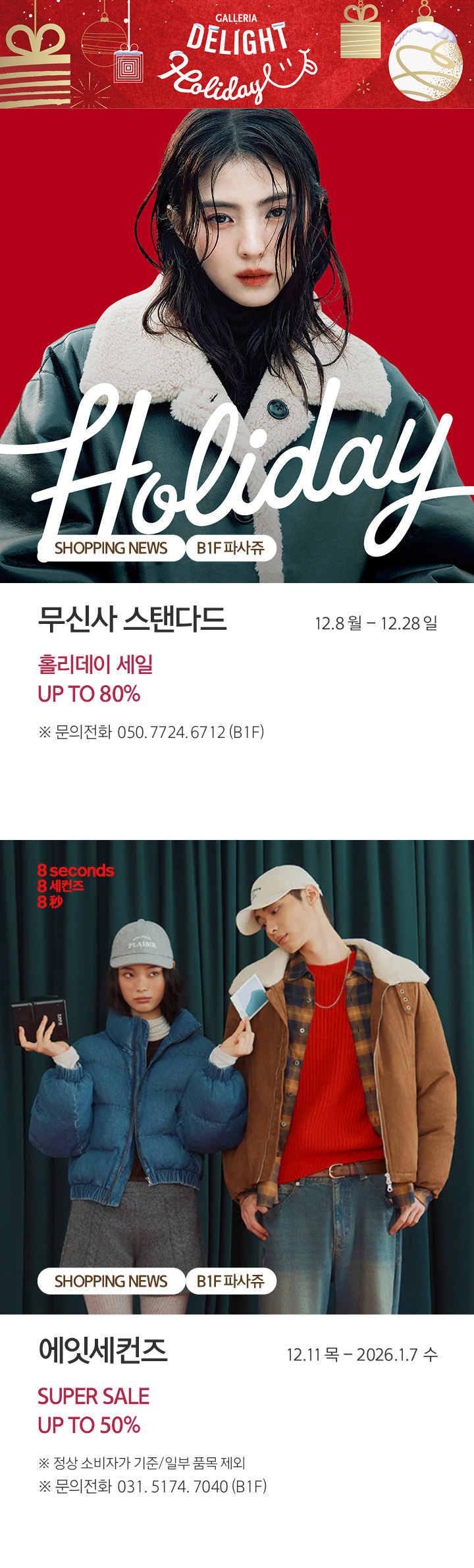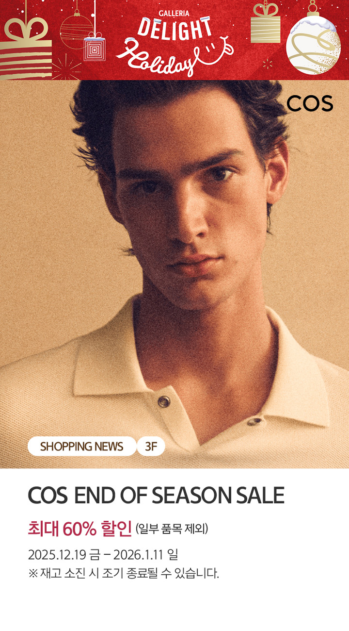 그 동안 갤러리아 수원점을 사랑해주신 고객님께 감사드립니다. 2020년 1월, 수원점은 영업종료 하였습니다. 2020년 2월 28일 오픈하는 갤러리아 광교에서 새로운 모습으로 뵙겠습니다. 감사합니다.
