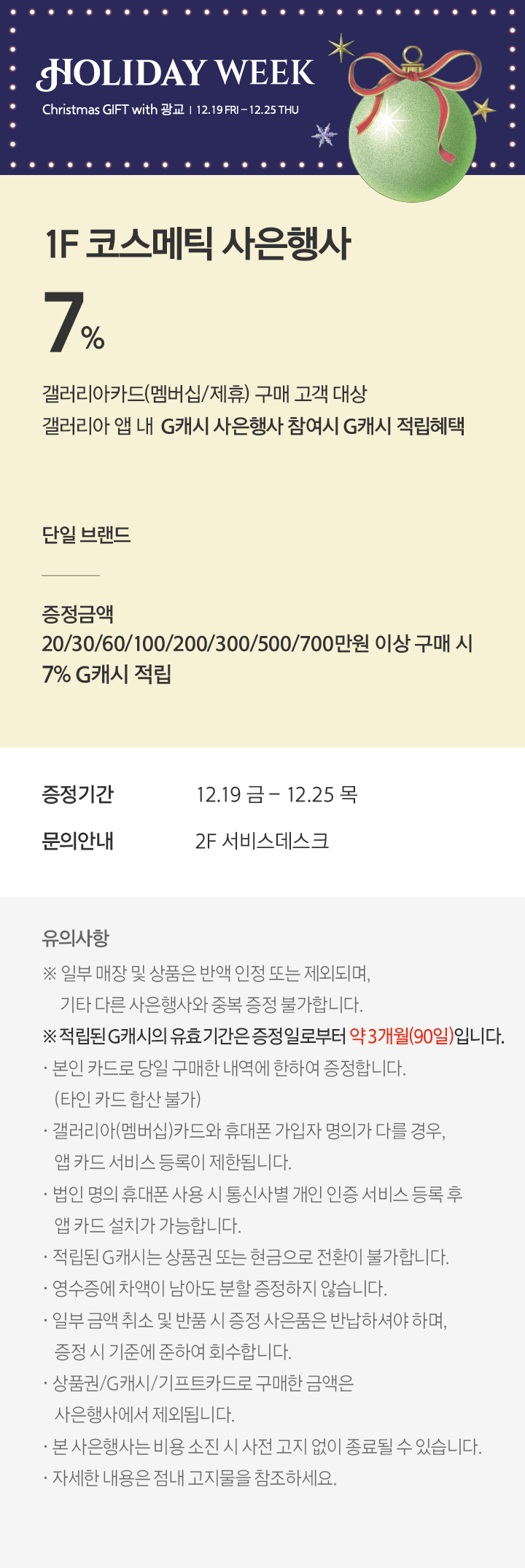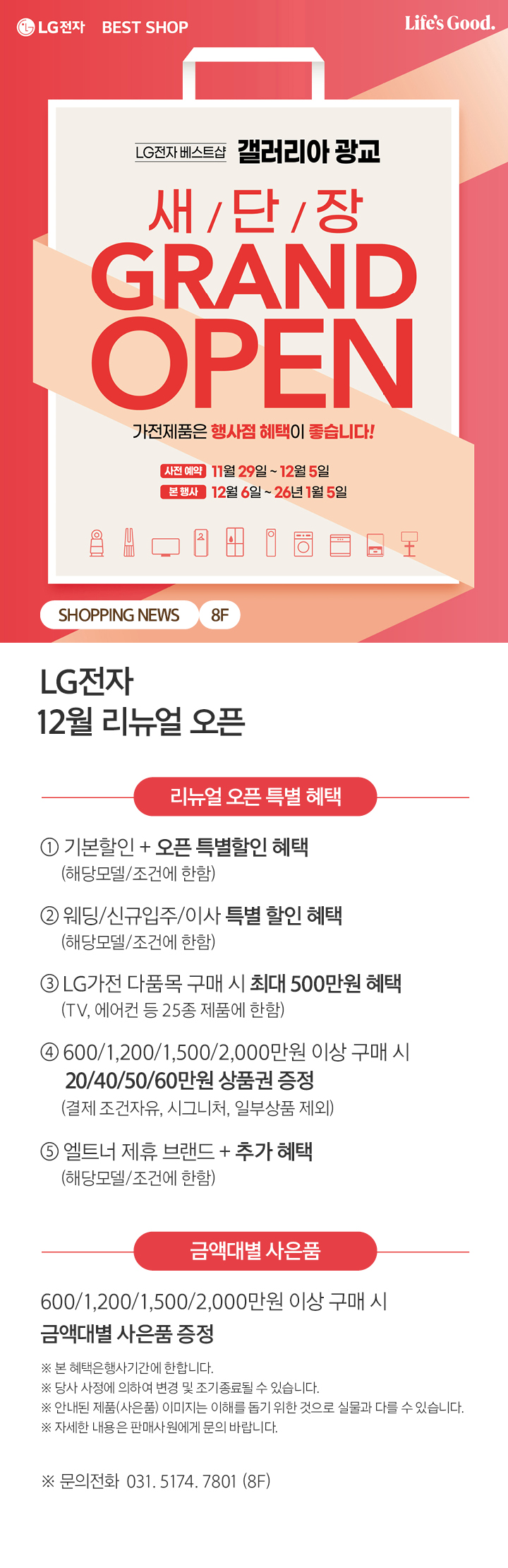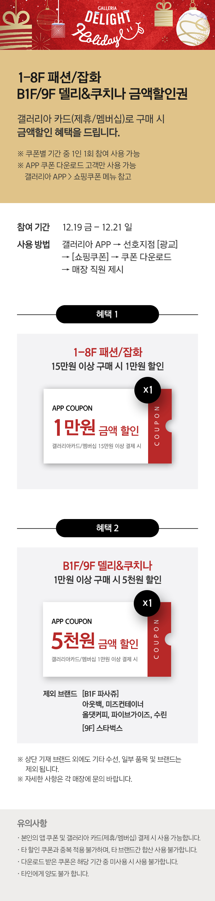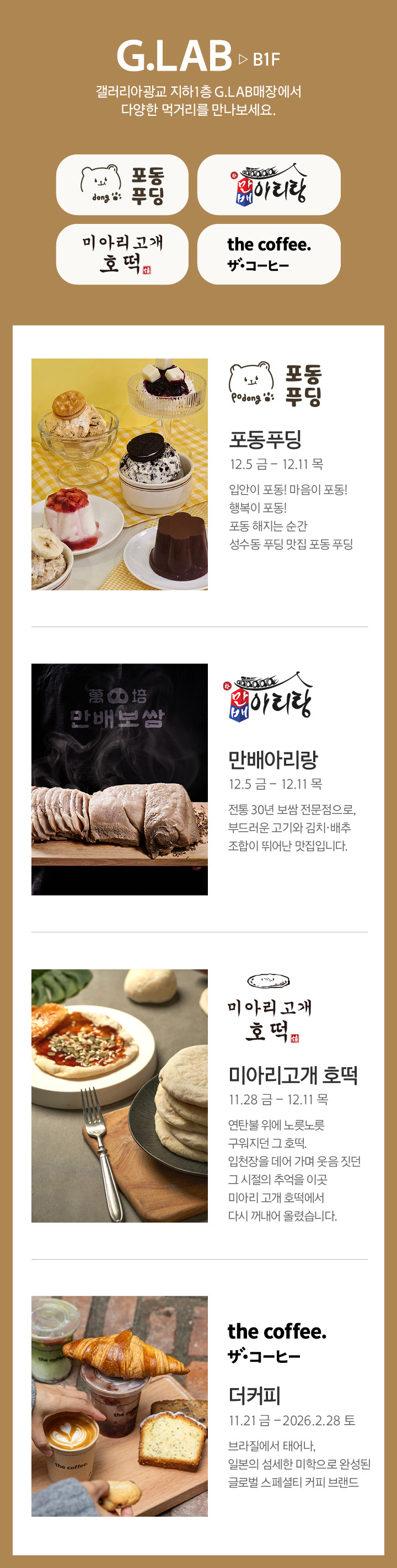 그 동안 갤러리아 수원점을 사랑해주신 고객님께 감사드립니다. 2020년 1월, 수원점은 영업종료 하였습니다. 2020년 2월 28일 오픈하는 갤러리아 광교에서 새로운 모습으로 뵙겠습니다. 감사합니다.