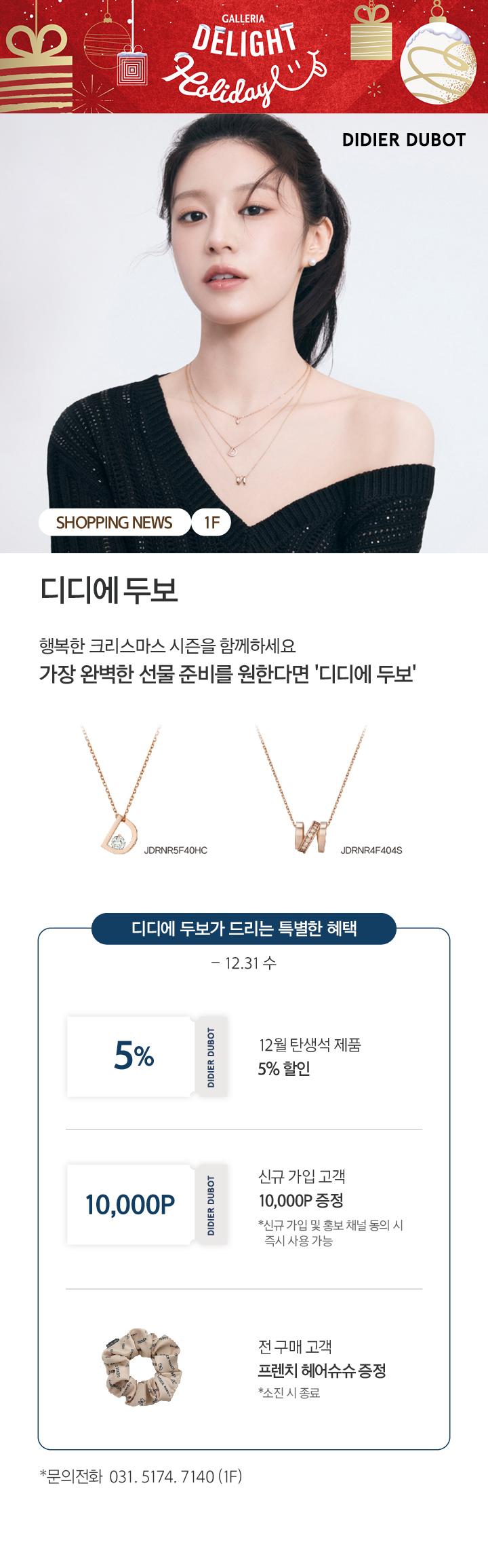 상품행사 SHOPPING NEWS 12.1-12.28, 1F 페이스북에 공유하기 카카오스토리로 공유하기 PREV 목록 NEXT 설 선물세트 예약 판매는 아래 번호로 문의 부탁드립니다. 광교 031.5174.6096-9 확인