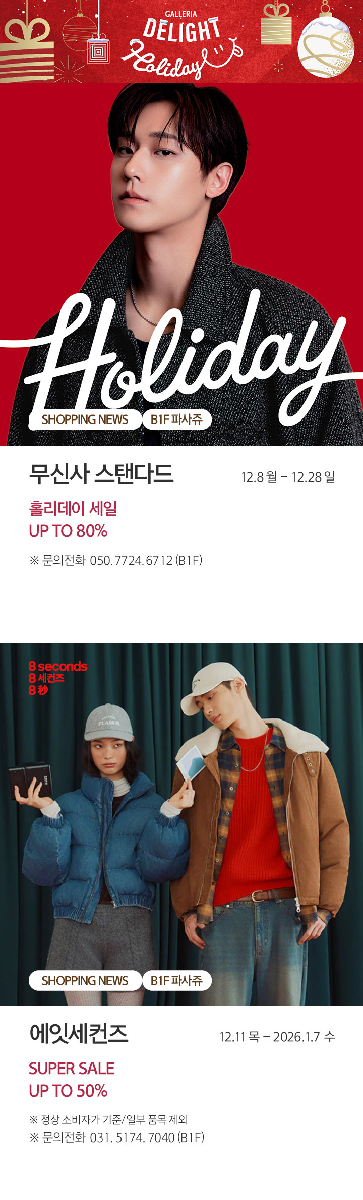 상품행사 SHOPPING NEWS 12.10 -12.28, B1F 파사쥬 페이스북에 공유하기 카카오스토리로 공유하기 PREV 목록 NEXT 설 선물세트 예약 판매는 아래 번호로 문의 부탁드립니다. 광교 031.5174.6096-9 확인