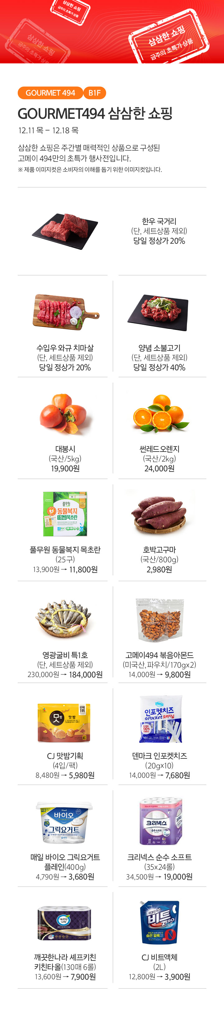 상품행사 GOURMET 494 12.11-12.18, B1F 페이스북에 공유하기 카카오스토리로 공유하기 PREV 목록 NEXT 설 선물세트 예약 판매는 아래 번호로 문의 부탁드립니다. 광교 031.5174.6096-9 확인