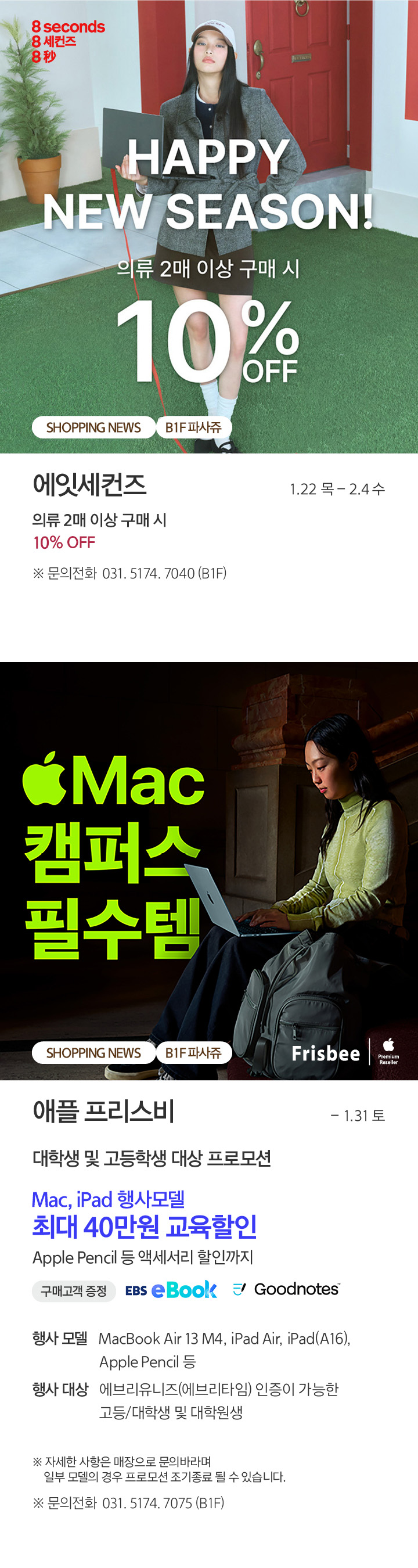 상품행사 SHOPPING NEWS 1.2-1.31, B1F 파사쥬 페이스북에 공유하기 카카오스토리로 공유하기 PREV 목록 NEXT 설 선물세트 예약 판매는 아래 번호로 문의 부탁드립니다. 광교 031.5174.6096-9 확인