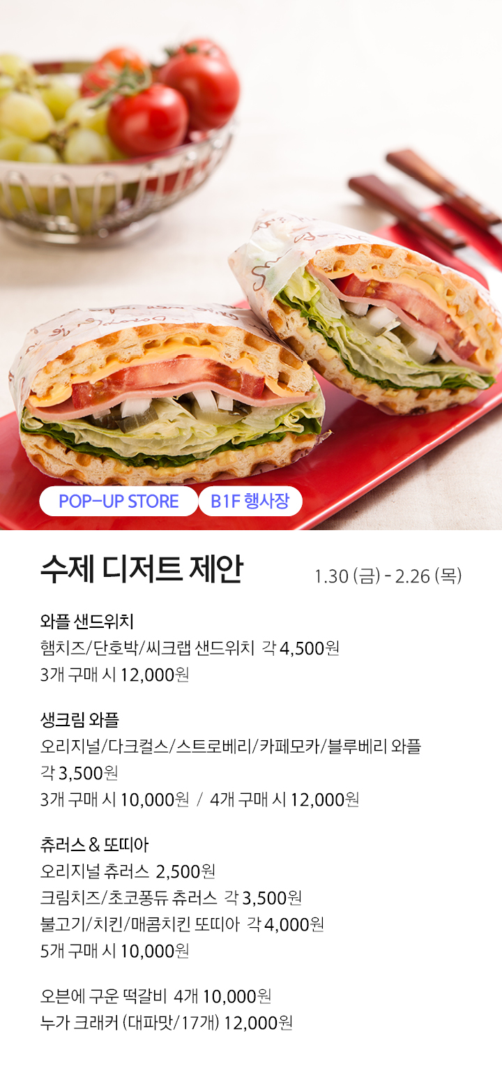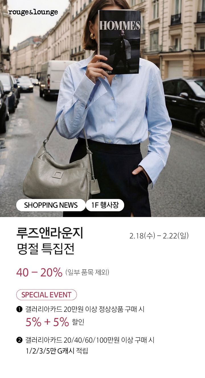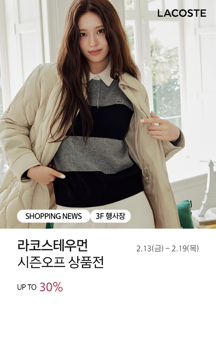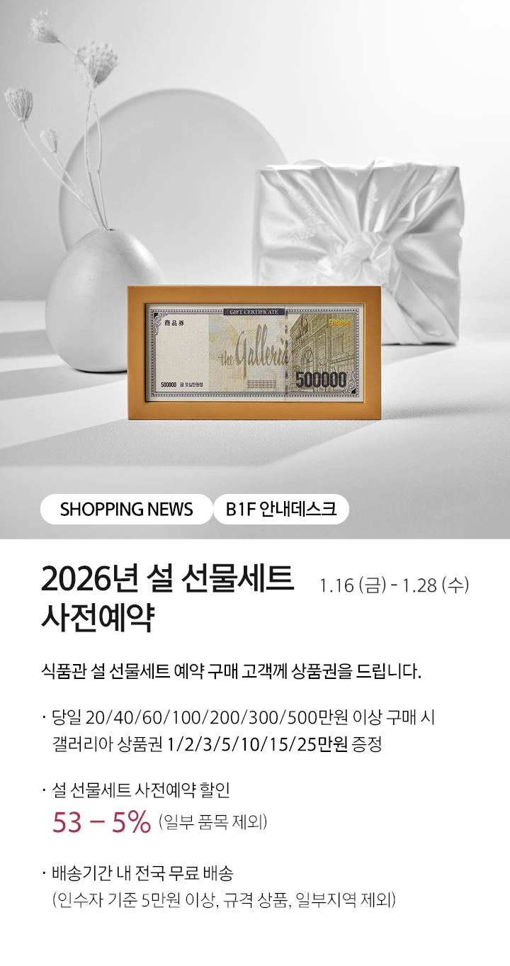 그 동안 갤러리아 수원점을 사랑해주신 고객님께 감사드립니다. 2020년 1월, 수원점은 영업종료 하였습니다. 2020년 2월 28일 오픈하는 갤러리아 광교에서 새로운 모습으로 뵙겠습니다. 감사합니다.