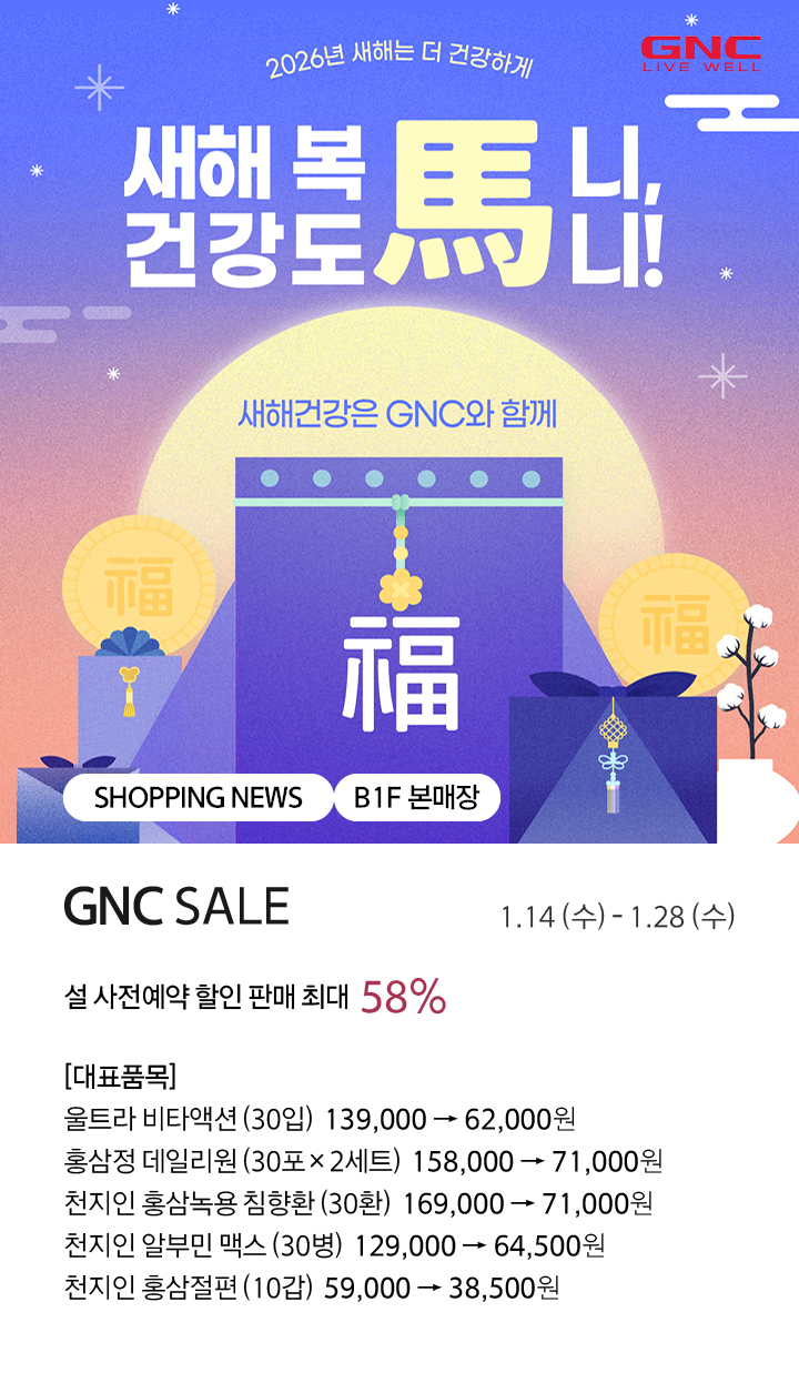 상품행사 GNC 설 SALE 페이스북에 공유하기 카카오스토리로 공유하기 PREV 목록 NEXT 설 선물세트 예약 판매는 아래 번호로 문의 부탁드립니다. 진주 055.791.1577, 1578 확인