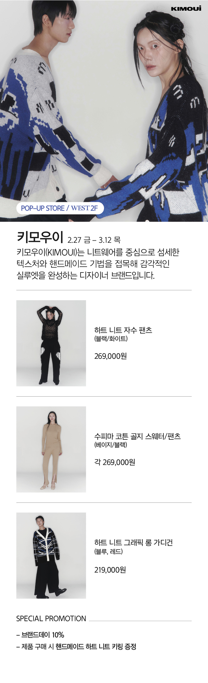 뉴오프닝&팝업 키모우이 페이스북에 공유하기 카카오스토리로 공유하기 PREV 목록 NEXT 설 선물세트 예약 판매는 아래 번호로 문의 부탁드립니다. 명품관 02.3449.4061 확인