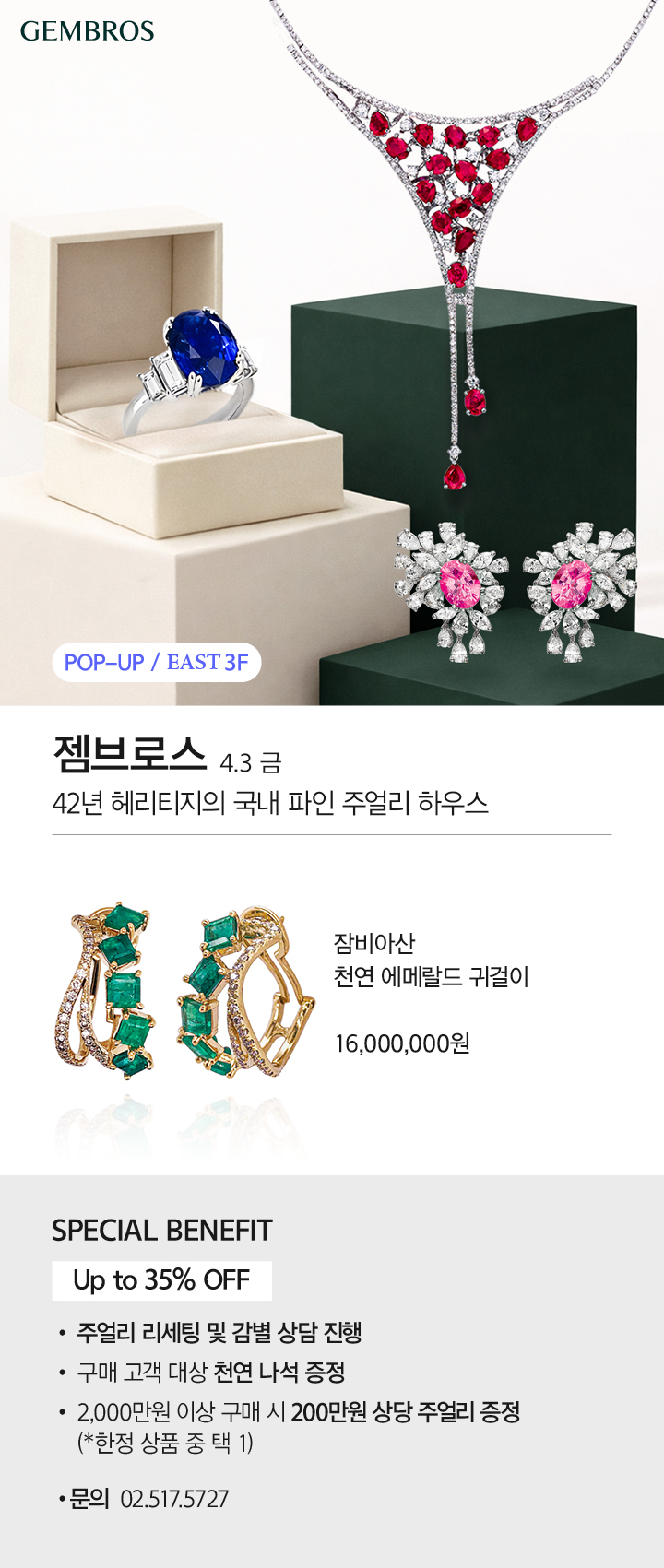 뉴오프닝&팝업 POP UP_젬브로스 페이스북에 공유하기 카카오스토리로 공유하기 PREV 목록 NEXT 설 선물세트 예약 판매는 아래 번호로 문의 부탁드립니다. 명품관 02.3449.4061 확인