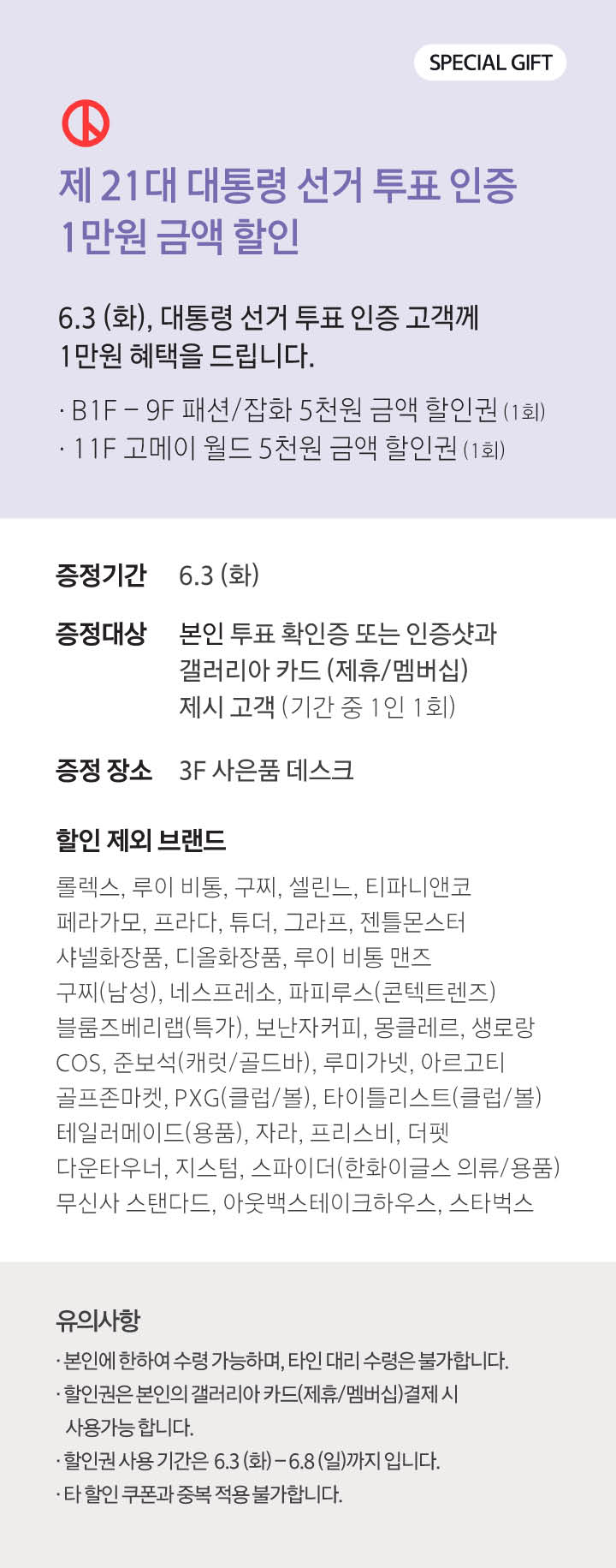 그 동안 갤러리아 수원점을 사랑해주신 고객님께 감사드립니다. 2020년 1월, 수원점은 영업종료 하였습니다. 2020년 2월 28일 오픈하는 갤러리아 광교에서 새로운 모습으로 뵙겠습니다. 감사합니다.