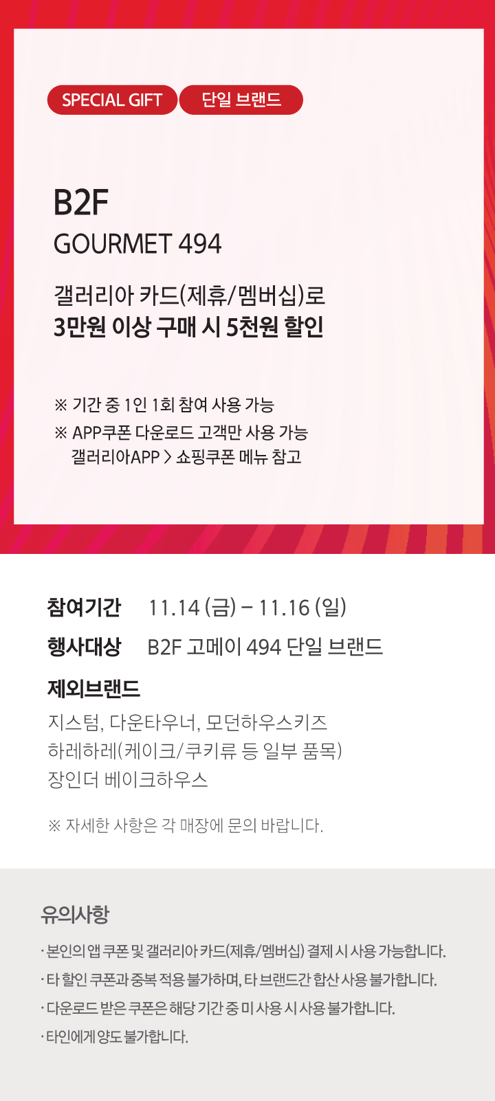 11.14 - 11.16, 갤러리아 APP을 다운로드 받으세요