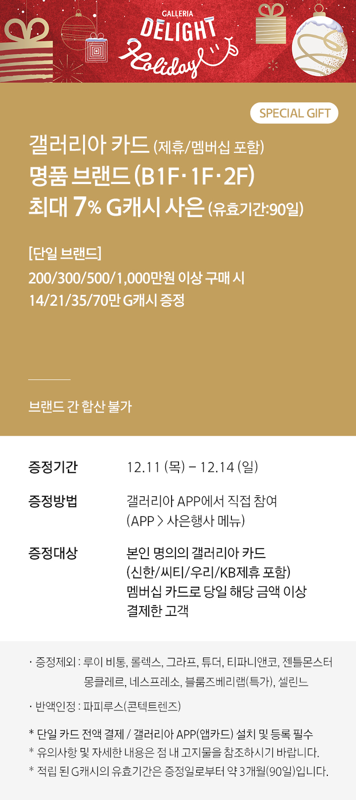 12.11 - 12.14, 갤러리아 APP을 다운로드 받으세요