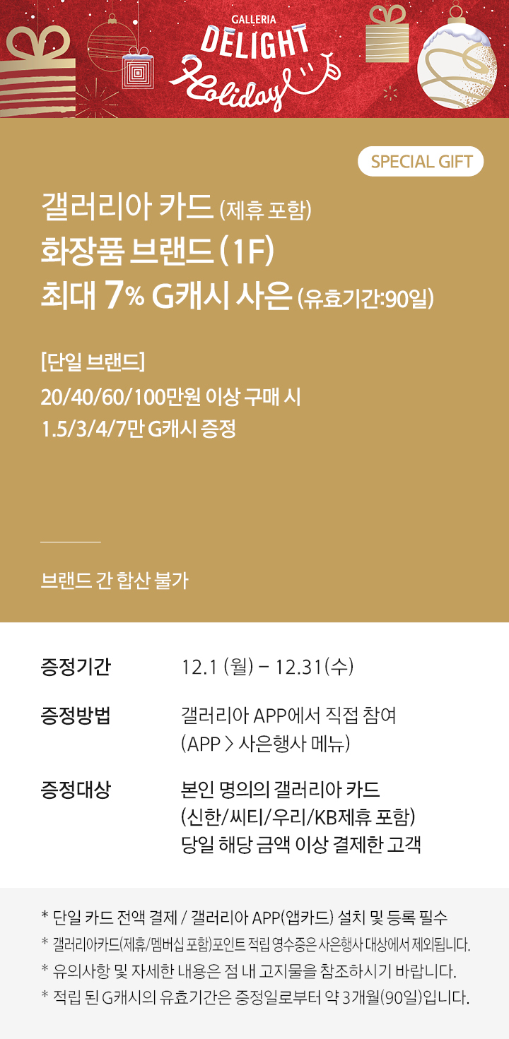12.1 - 12.31, 갤러리아 APP을 다운로드 받으세요