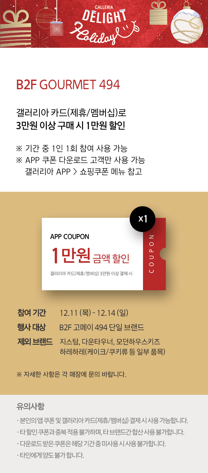 12.11 - 12.14, 갤러리아 APP을 다운로드 받으세요