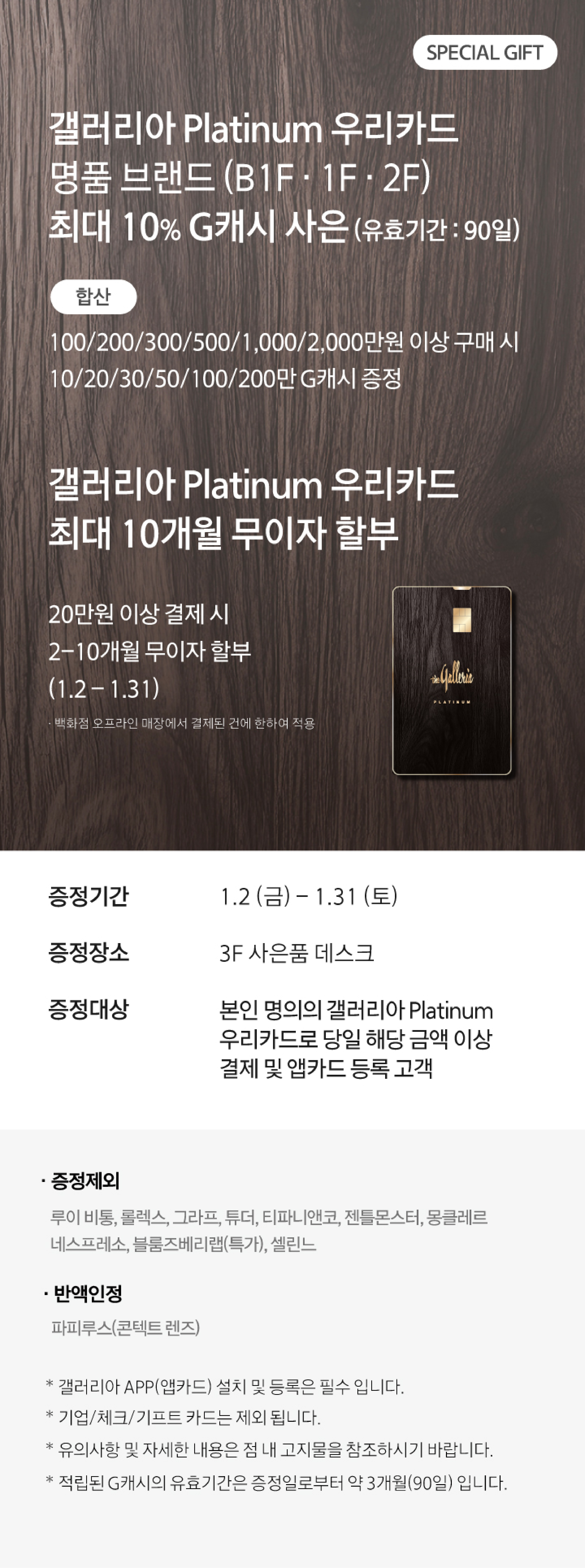 그 동안 갤러리아 수원점을 사랑해주신 고객님께 감사드립니다. 2020년 1월, 수원점은 영업종료 하였습니다. 2020년 2월 28일 오픈하는 갤러리아 광교에서 새로운 모습으로 뵙겠습니다. 감사합니다.
