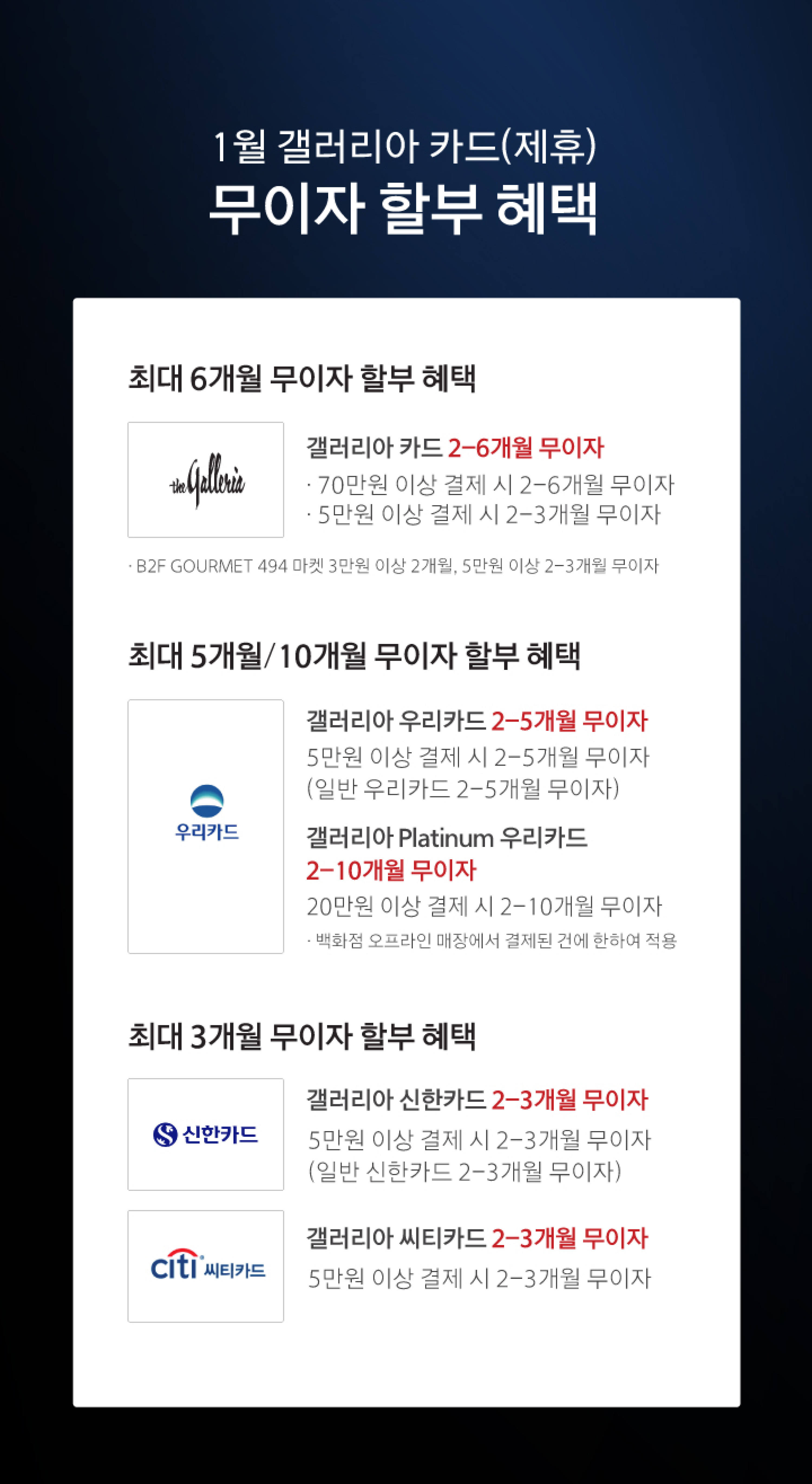 1월 갤러리아 카드(제휴) 무이자 할부 혜택