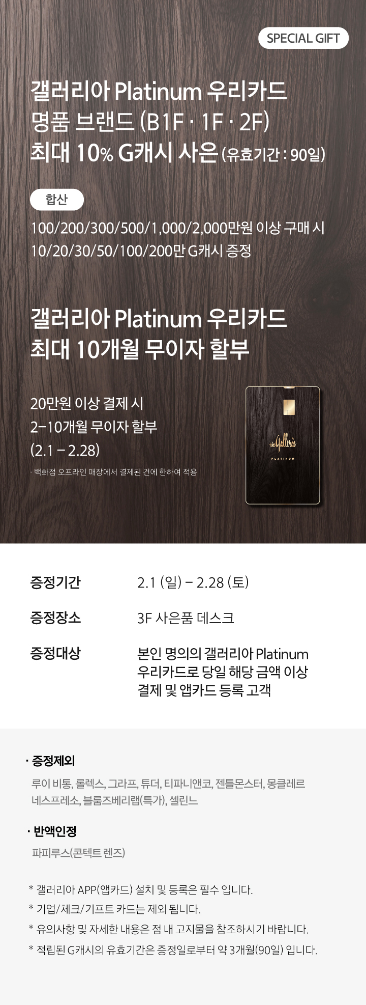그 동안 갤러리아 수원점을 사랑해주신 고객님께 감사드립니다. 2020년 1월, 수원점은 영업종료 하였습니다. 2020년 2월 28일 오픈하는 갤러리아 광교에서 새로운 모습으로 뵙겠습니다. 감사합니다.