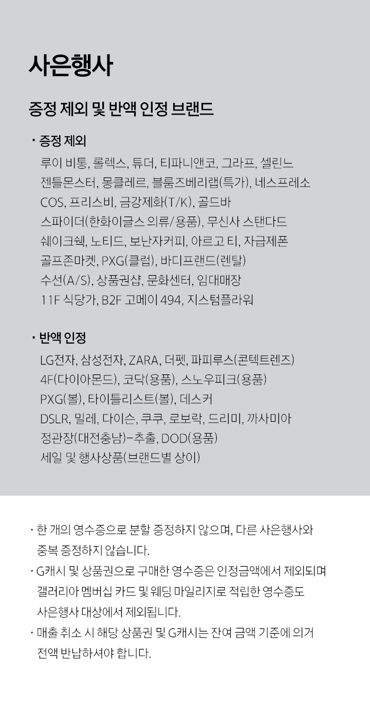 사은행사 증정 제외 및 반액 인정 브랜드