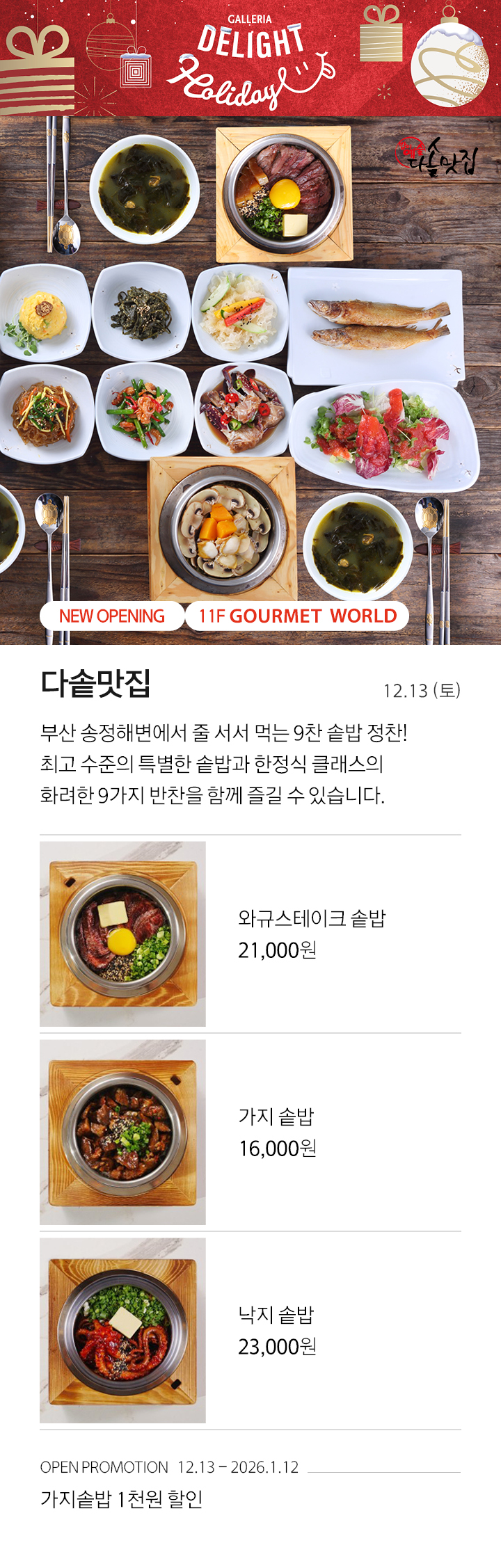 뉴오프닝&팝업 NEW OPENING 다솥맛집 11F GOURMET WORLD 페이스북에 공유하기 카카오스토리로 공유하기 PREV 목록 NEXT 설 선물세트 예약 판매는 아래 번호로 문의 부탁드립니다. 타임월드 042.480.5587 확인