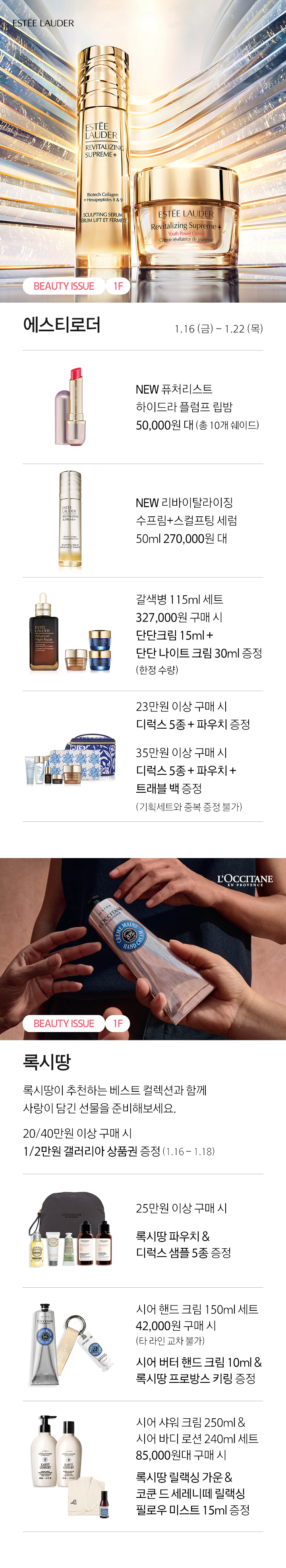 상품행사 BEAUTY ISSUE 1F 페이스북에 공유하기 카카오스토리로 공유하기 PREV 목록 NEXT 설 선물세트 예약 판매는 아래 번호로 문의 부탁드립니다. 타임월드 042.480.5587 확인