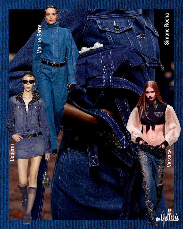 1년 내내 사랑받는 소재로 데님을 빼놓을 수 없다. ‘하늘 아래 똑같은 데님은 없다’는 말처럼 매 시즌, 각기 다른 채도와 디테일로 등장한 데님 아이템을 발견하는 건 패션쇼를 감상하는 또 다른 재미가 아닐까 싶다. 컬렉션 전반에 걸쳐 데님을 활용한 디젤은 다채로운 디자인과 빈티지 워싱 디테일로 변주를 감행했으며, 시몬 로샤는 진한 인디고 데님에 화이트 스티치를 넣어 은근한 멋을 더했다. 그런가 하면 베르사체는 강렬한 스터드 장식을 활용해 웨스턴 스타일로 풀어냈다.