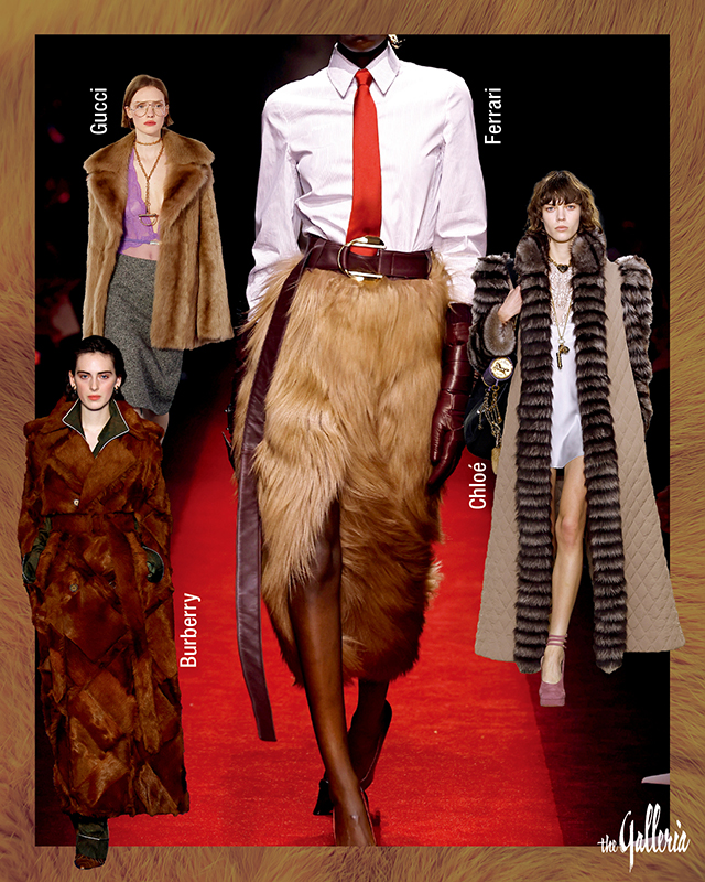 겨울철, 누구나 입는 부해 보이는 패딩 점퍼에 싫증 났다면 페이크 퍼 아이템에 주목하자. 온몸을 따뜻하게 감싸주는 것은 물론 스타일리시한 연출이 가능하기 때문이다. 매해 명민한 디자이너의 손길로 업그레이드되는 페이크 퍼 아이템이 이번엔 베이지, 브라운, 그레이 같은 부드러운 컬러와 만났다. 실루엣 또한 보다 풍성해진 게 특징이다. 끌로에와 구찌는 관능적인 레이스 아이템을 이너로 매치해 섹슈얼한 분위기를 풍겼고, 페라리는 페이크 퍼 펜슬 스커트와 셔츠, 레드 타이로 색다른 오피스 룩을 완성했다.
