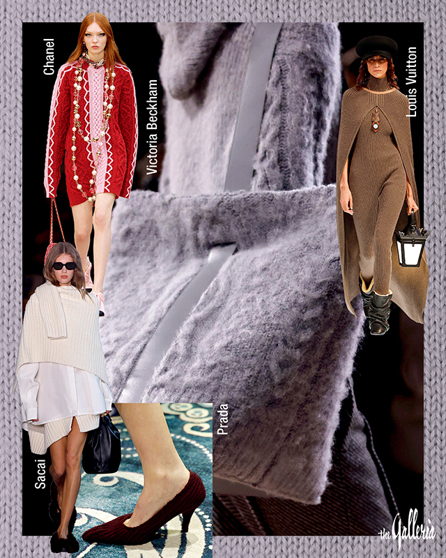 바야흐로 니트의 계절이 왔다. 부드러운 캐시미어부터 가슬가슬한 모헤어까지, 우리의 촉감을 자극하는 니트웨어의 매력에 빠질 시간이다. 샤넬은 독특한 짜임의 니트 드레스에 우아한 진주 네크리스를 매치해 룩에 생기를 더했으며, 루이 비통은 니트 소재 보디슈트에 동일 소재의 케이프를 둘러 걸을 때마다 드라마틱한 효과를 배가시켰다. 또 사카이는 자칫 심심해 보일 수 있는 화이트 셔츠에 도톰한 스웨터를 걸쳐 시선을 사로잡았다.