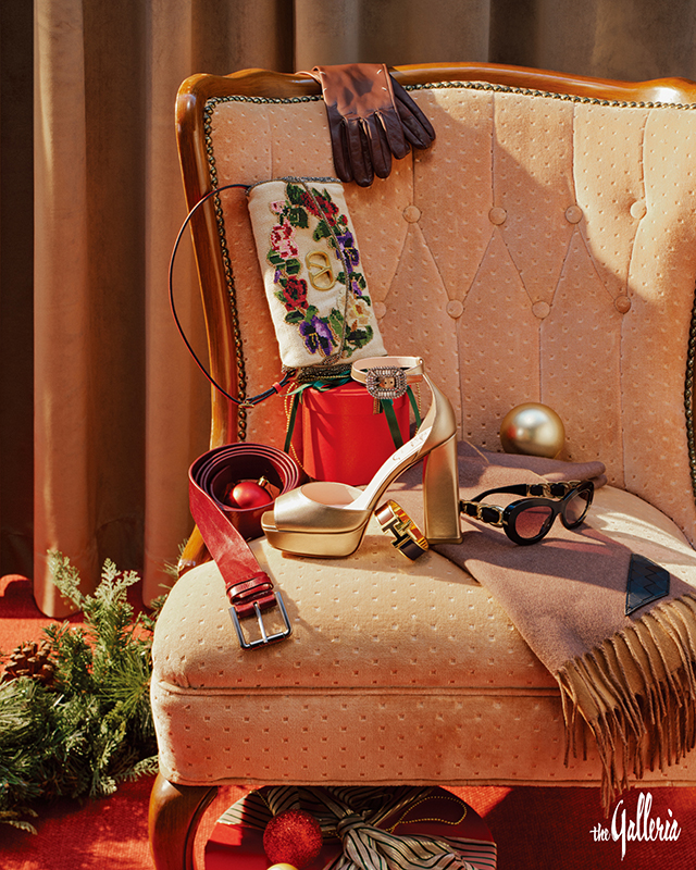 (왼쪽 아래부터 시계 방향) MAX MARA 은은한 광택이 돋보이는 카우 레더 소재에 2개의 고리 디테일을 더한 엑스트라 롱 벨트. 88만원 EAST 3F 02.6905.3450 VALENTINO GARAVANI 정교하게 수놓은 플로럴 자수와 메탈릭 브이 로고 디테일이 로맨틱한 분위기를 풍기는 숄더백. 가격 미정 EAST 2F 02.543.5125 MAISON MARGIELA 손바닥 부분의 섬세한 밴드로 편안한 착용감을 자랑하는 레더 글러브. 98만원 EAST 3F 02.6905.3556 BOTTEGA VENETA 인트레치아토 가죽 패치를 갖춘 부드러운 캐시미어 소재 스카프. 1백64만원 WEST 1F 02.515.2717 CHANEL 그레이 렌즈와 템플의 체인 디테일이 오묘한 조화를 이룬 선글라스. 가격 미정 EAST 1F 080.805.9628 ROGER VIVIER 미니 크리스털 버클 장식을 가미한 앵클 스트랩이 특징인 메탈릭 나파 가죽 플랫폼 샌들. 2백37만원 EAST 2F 02.6905.3370 HERMÈS 미니 팝 아쉬 애니메이션에서 모티브를 얻은 다채로운 컬러 조합이 인상적인 클릭 아쉬 브레이슬릿. 가격 미정 WEST 1F 02.547.0437