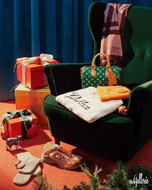 (왼쪽부터) ROYAL COPENHAGEN 크리스마스 플레이트의 모티브에서 영감을 얻어 탄생한 컬렉터블 2026 고양이 피규린. 17만2천원 광교 8F 031.5174.7844 HERMÈS 손을 포근하게 감싸는 울 소재의 레오폴드 글러브. 가격 미정 WEST 1F 02.547.0437 DIOR MEN 러닝 세계에서 모티브를 얻은 B30 Countdown Tech 스니커즈는 반투명하고 통기성이 뛰어난 멀티 레이어 테크니컬 패브릭을 사용했다. 가격 미정 WEST 4F 02.518.8484 DOLCE & GABBANA 큼지막한 로고 레터링으로 포인트를 준 크루넥 풀오버. 가격 미정 WEST 4F 02.6905.3619 FENDI 상큼한 오렌지 롱파일 포 퍼 소재에 펜디 로마 패브릭 패치 장식을 톤온톤으로 맞춘 비니. 60만5천원 WEST 4F 02.6905.3717 LOUIS VUITTON 모노그램 프린트와 골드 하드웨어, 그리고 부드러운 카프스킨 소재로 제작한 스피디 P9 반둘리에 25. 1천2백95만원 WEST 4F 02.3432.1854 BERLUTI 교차하는 선과 로고 레터링으로 포인트를 준 파티나 스트라이프 스카프. 가격 미정 WEST 4F 02.547.1895