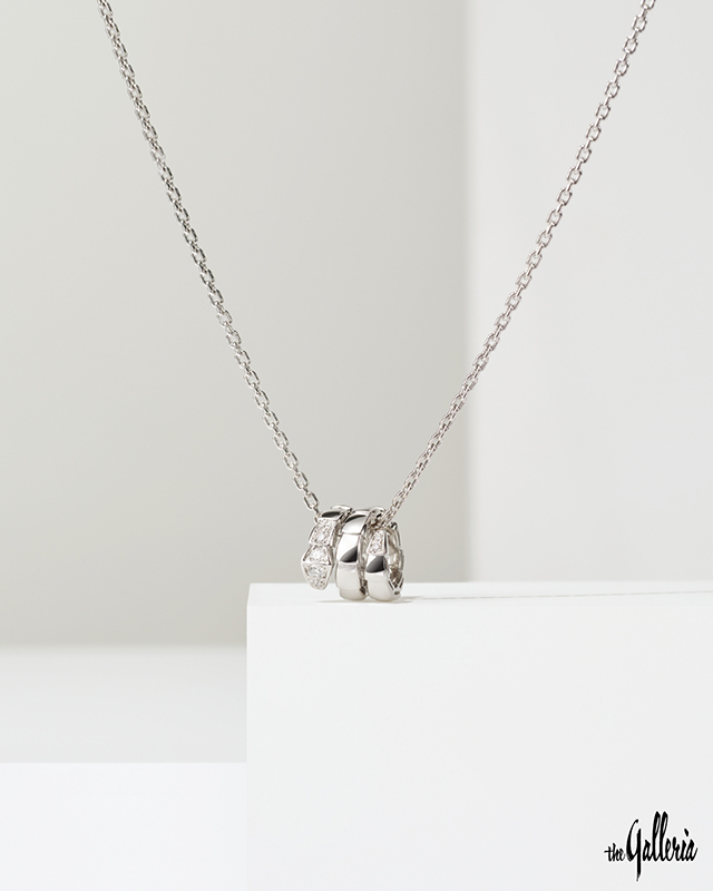 고대부터 변형과 재생, 생명력을 상징해온 뱀을 모티브로 한 불가리의 세르펜티 컬렉션. 그중에서도 새롭게 선보이는 화이트 골드 소재의 세르펜티 바이퍼 네크리스는 비늘을 하나씩 이어 붙인 듯한 모듈식 구조와 슬림한 실루엣이 시선을 사로잡는다. 또한 뱀의 헤드와 테일 부분엔 다이아몬드 데미 파베 세팅을 가미해 끊임없이 진화하는 불가리 아이콘을 간결하고 모던하게 표현해냈다. 매치 방법에 따라 다양한 연출이 가능해 스타일에 자유로운 변주를 더해주는 점 또한 매력적이다. 8백80만원.